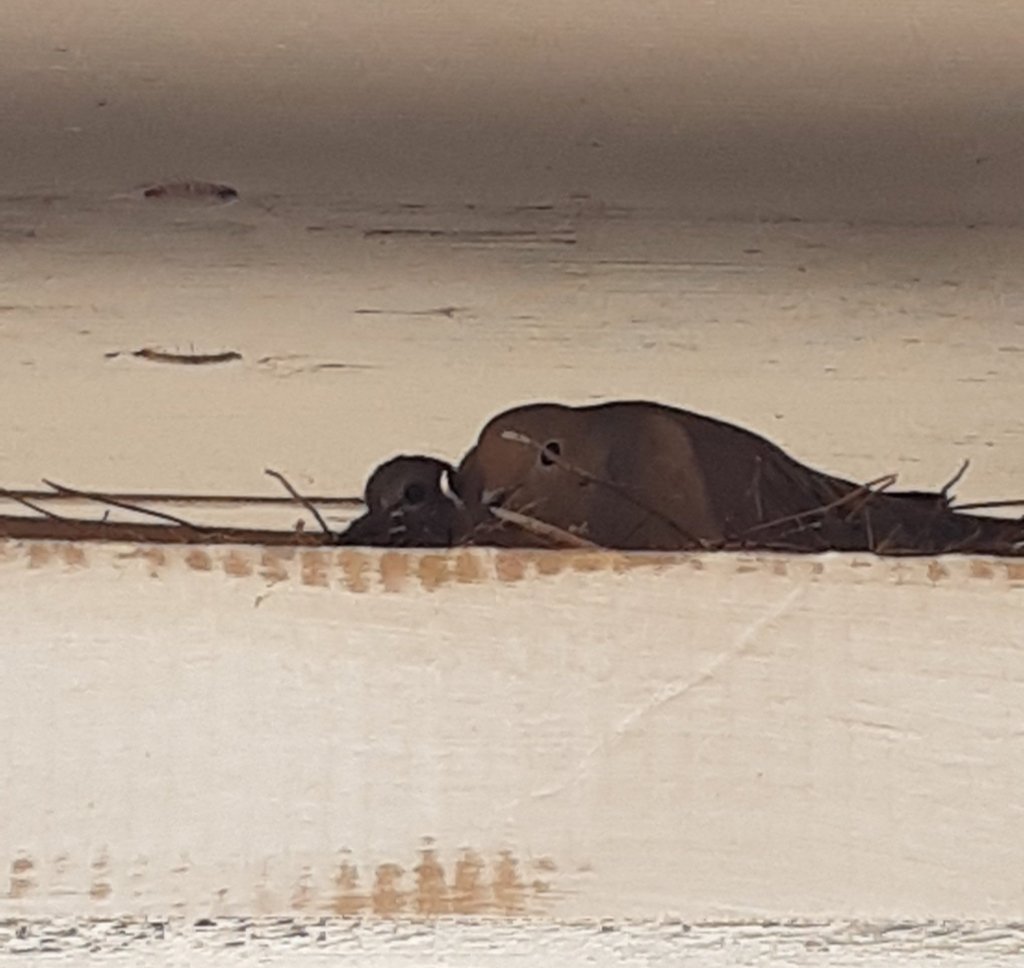 P.S.  My picture is of the NEW baby dove.  We put a lid from an old Avon box under our eaves years ago and each spring, a mama dove inhabits it and brings forth a new baby or two.  NEW BIRTH!