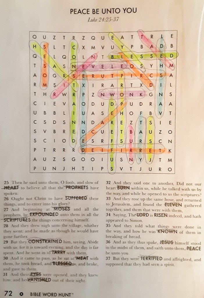 Here’s mine that I stumbled upon in the picture above, Bible Word Find puzzles. It not only lets me focus on scripture, it clears my A.D.D. mind and I start praying for different people who “pop” into my head.