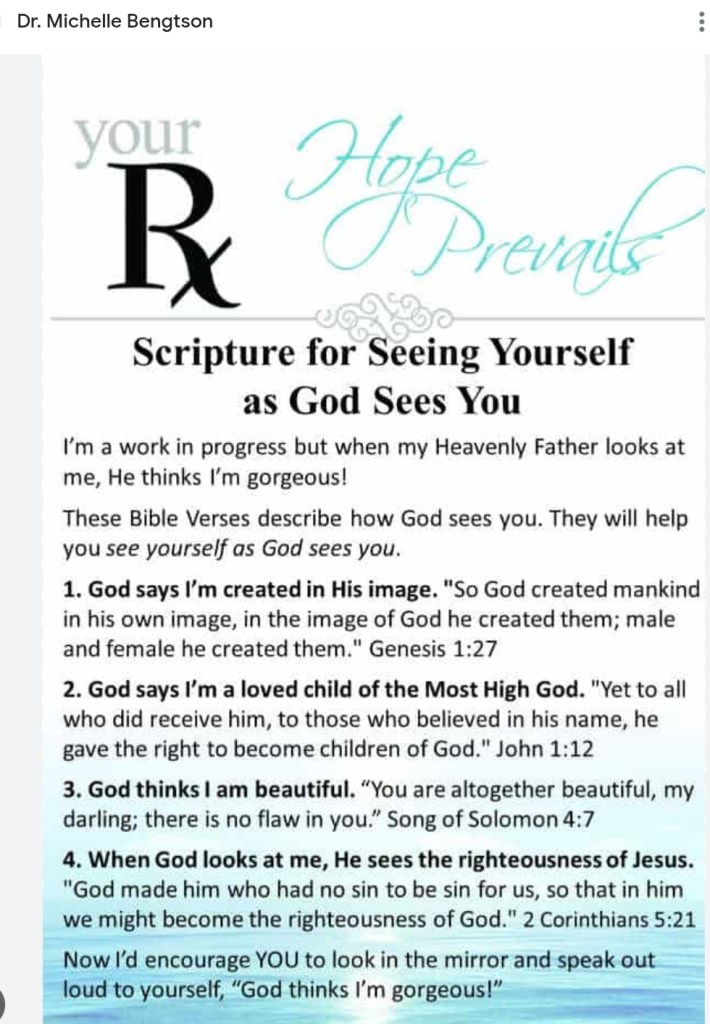 Spiritually, it connects missing pieces to accepting God’s unconditional love, feeling closer to Him. HE is always there, waiting patiently, constantly available, happy to help if you ask, infinite love. His grace and mercy are yours. He sent Jesus for us.